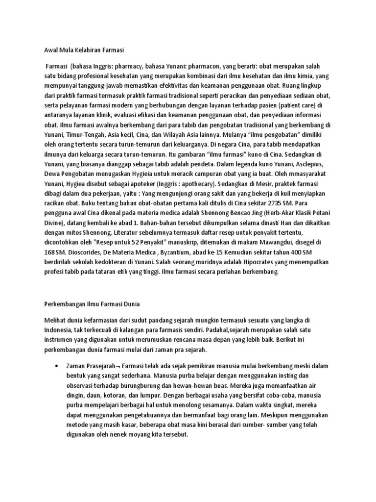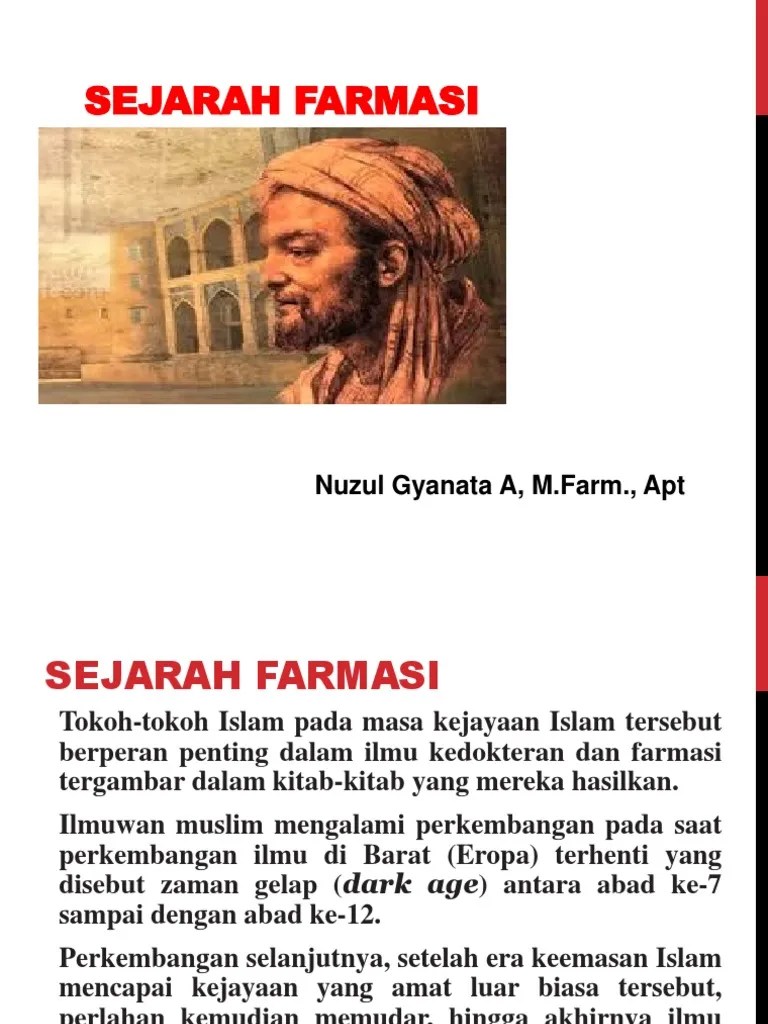 Sejarah & perkembangan kefarmasian from ancient to biotechnology era fa1103 . Perkembangan farmasi di indonesia sudah dimulai semenjak zaman. Keduanya telah menulis banyak buku yang diterjemahkan kedalam bahasa. Berkaitan antara farmakologi , farmakognosi , galenika dan kimia farmasi. Membahas sejarah dunia pengobatan atau sejarah dari farmasi serta.