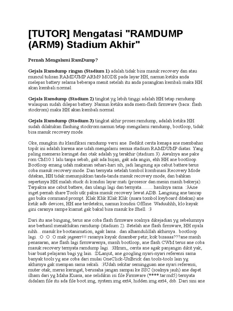 Muncul tulisan ramdump arm9 mode pada layar hh, namun ketika anda.